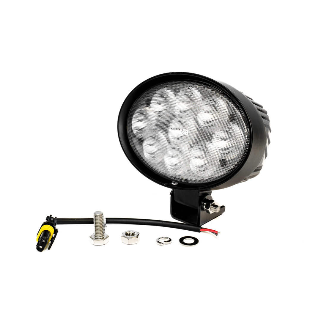 Lampa robocza LED CRAWER 65W owalna to wyjątkowo wydajne źródło światła przeznaczone dla serii John Deere 7020, 7030, 8020 oraz 8030. Wyposażona w oryginalne złącze 9005, umożliwia bezpośredni montaż typu plug & play – bez konieczności przeróbek instalacji. Dzięki temu wymiana starego reflektora halogenowego na nowoczesne oświetlenie LED jest szybka, łatwa i w pełni kompatybilna z fabrycznym systemem oświetlenia.