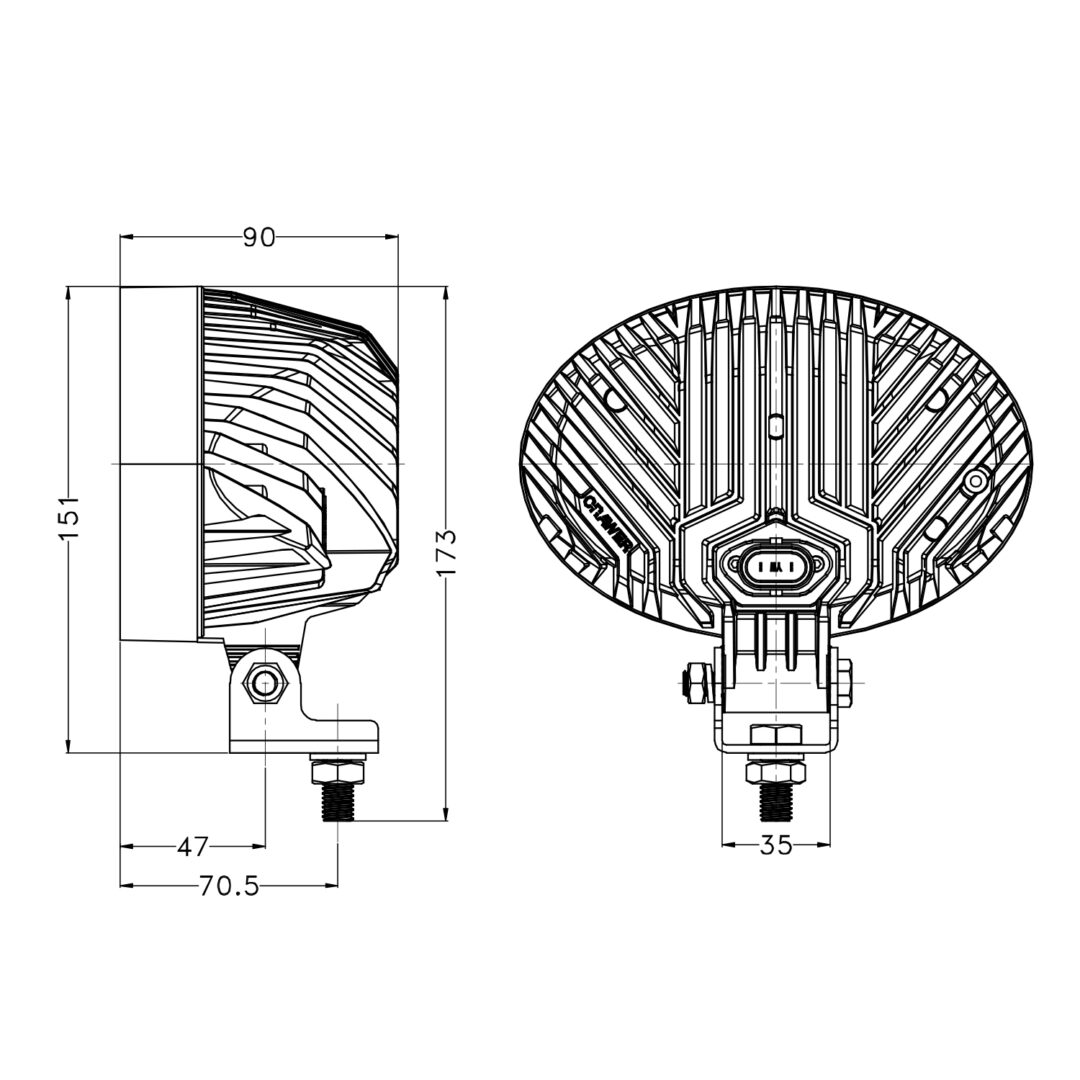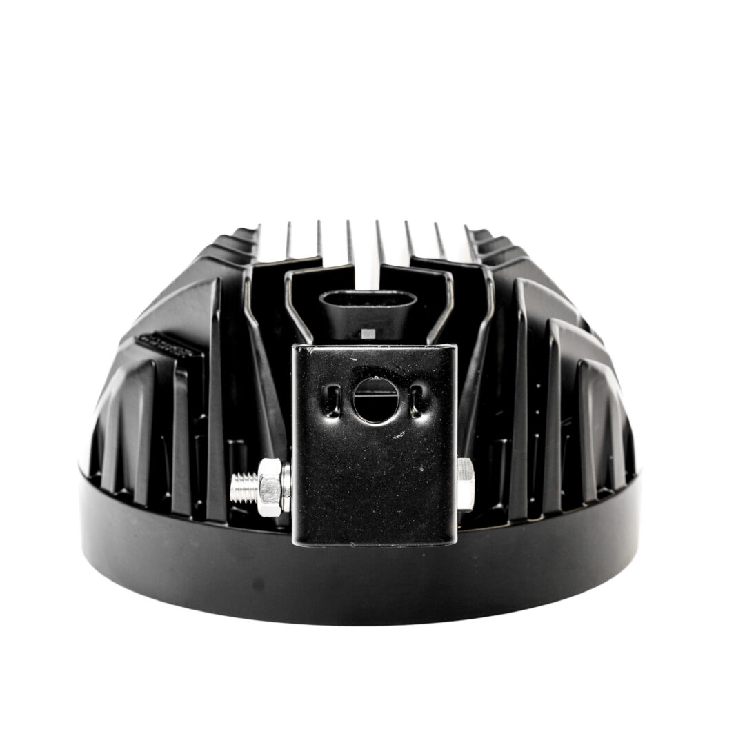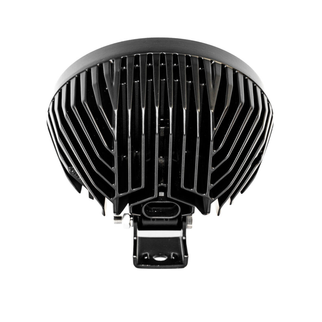 Reflektor generuje potężny strumień świetlny o mocy 6500 lumenów, zapewniający skupione, precyzyjne światło, które idealnie oświetla obszar roboczy przed pojazdem. To rozwiązanie, które znacząco poprawia komfort oraz bezpieczeństwo pracy. Dodatkowo, lampa LED CRAWER została wyposażona w układ tłumienia zakłóceń radiowych (CISPR 4), co oznacza, że nie powoduje żadnych interferencji z radiem ani inną elektroniką w kabinie. Solidna, aluminiowa obudowa malowana proszkowo oraz wysoka klasa szczelności IP67 gwarantują niezawodne działanie nawet w trudnych warunkach polowych.
