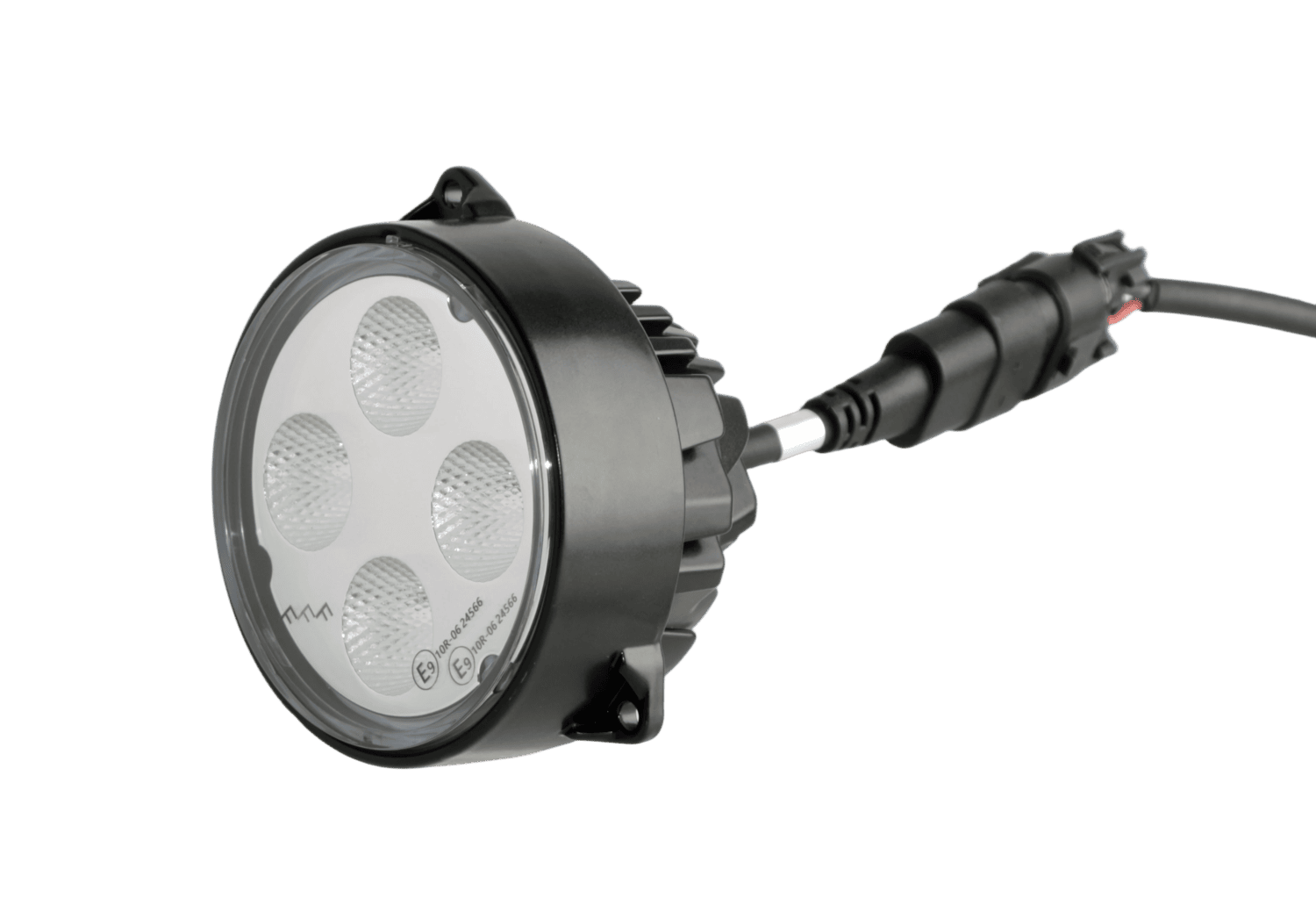 Ten model służy wyłącznie jako oświetlenie robocze – nie posiada homologacji drogowej. Dzięki rozproszonej wiązce światła o kącie 60 stopni zapewnia szerokie i równomierne oświetlenie terenu wokół maszyny, co znacząco poprawia widoczność podczas pracy w polu, na podwórzu czy w magazynie. Lampa wyposażona jest w układ EMC klasy CISPR 4, który eliminuje zakłócenia radiowe. Dzięki temu radio, CB czy inne urządzenia elektroniczne w kabinie pracują bez zakłóceń.