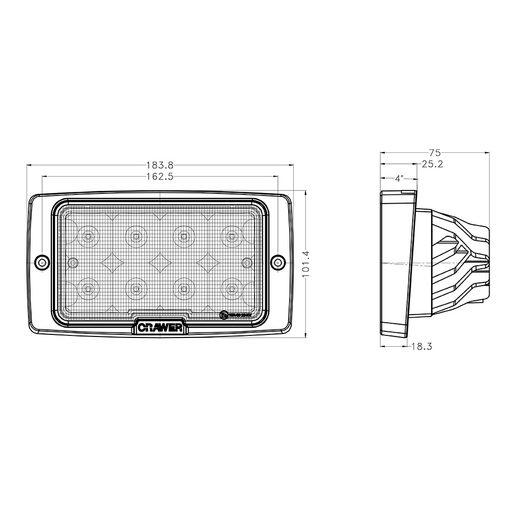 Lampa robocza LED CRAWER 60W do zabudowy jest w pełni kompatybilna z wieloma maszynami rolniczymi i budowlanymi – stanowi idealny zamiennik oryginalnych reflektorów Hella, Claas, Case IH, New Holland, Komatsu.