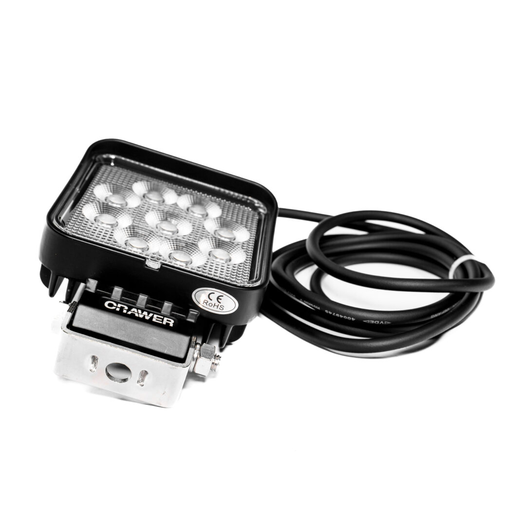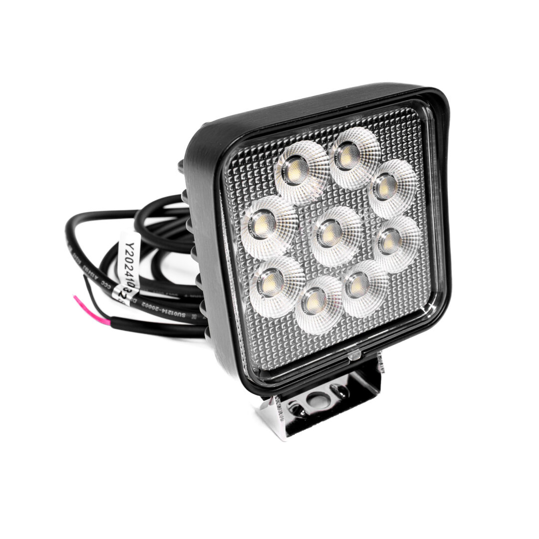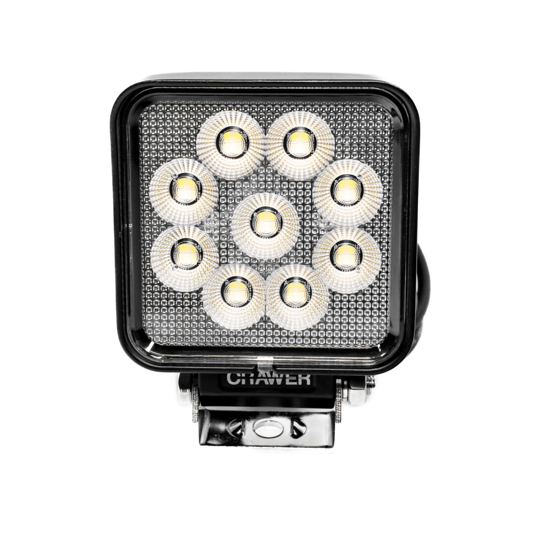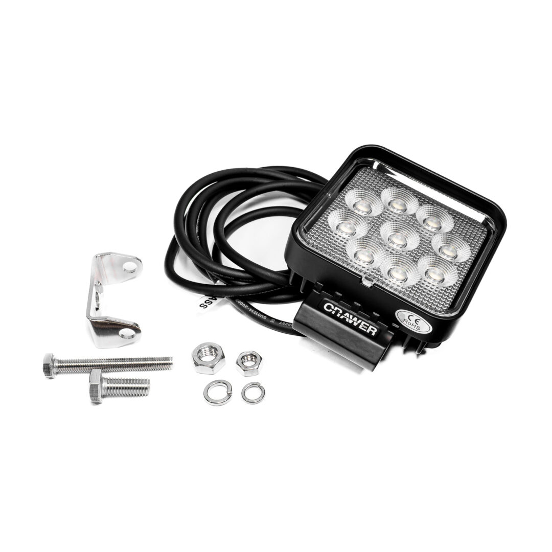 Lampa robocza CRAWER LED 27W to solidny i wydajny reflektor o kwadratowej konstrukcji, który zapewnia intensywne, szerokokątne światło robocze o strumieniu 2400 lumenów. Dzięki 9 diodom LED o mocy 3W każda, generującym zimno białe światło o temperaturze barwowej 6000K, lampa doskonale oświetla przestrzeń wokół maszyny, znacząco poprawiając widoczność i bezpieczeństwo pracy po zmroku. To idealne rozwiązanie dla użytkowników maszyn rolniczych, budowlanych i terenowych, którzy szukają trwałego i mocnego zamiennika tradycyjnych reflektorów halogenowych.