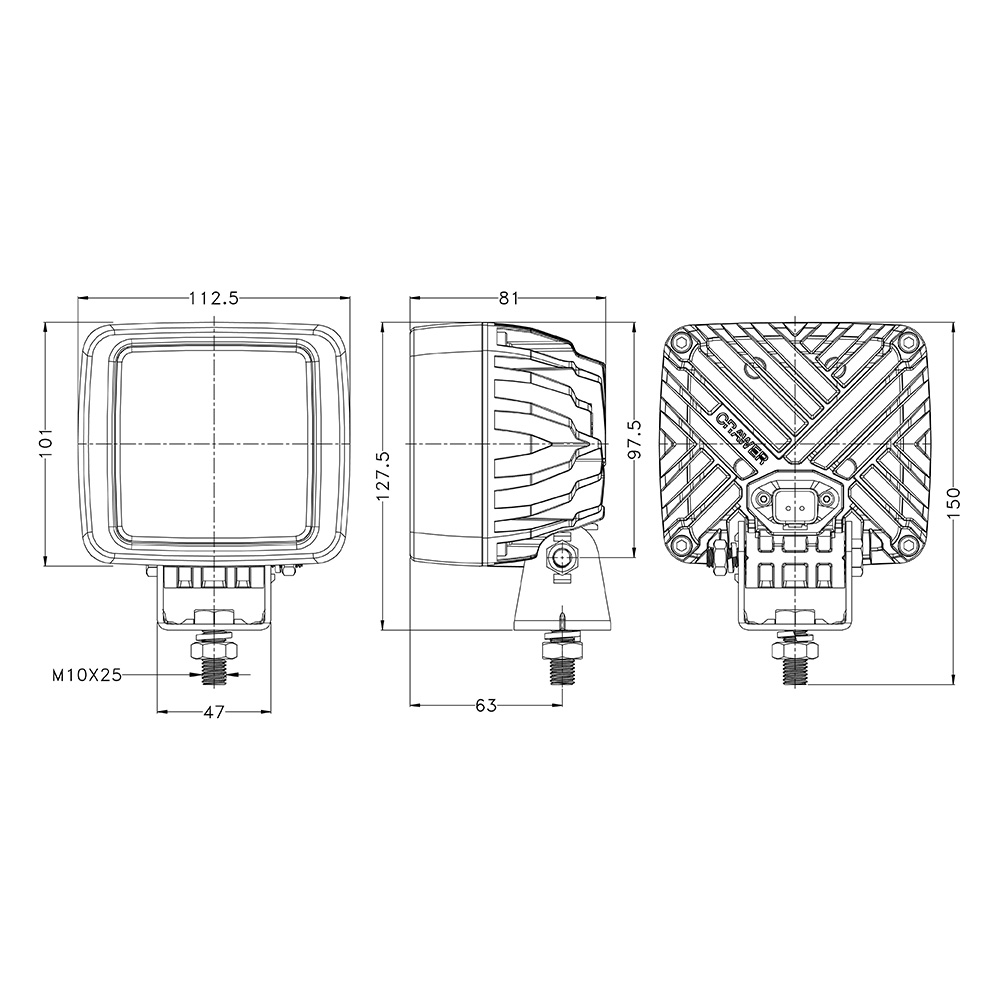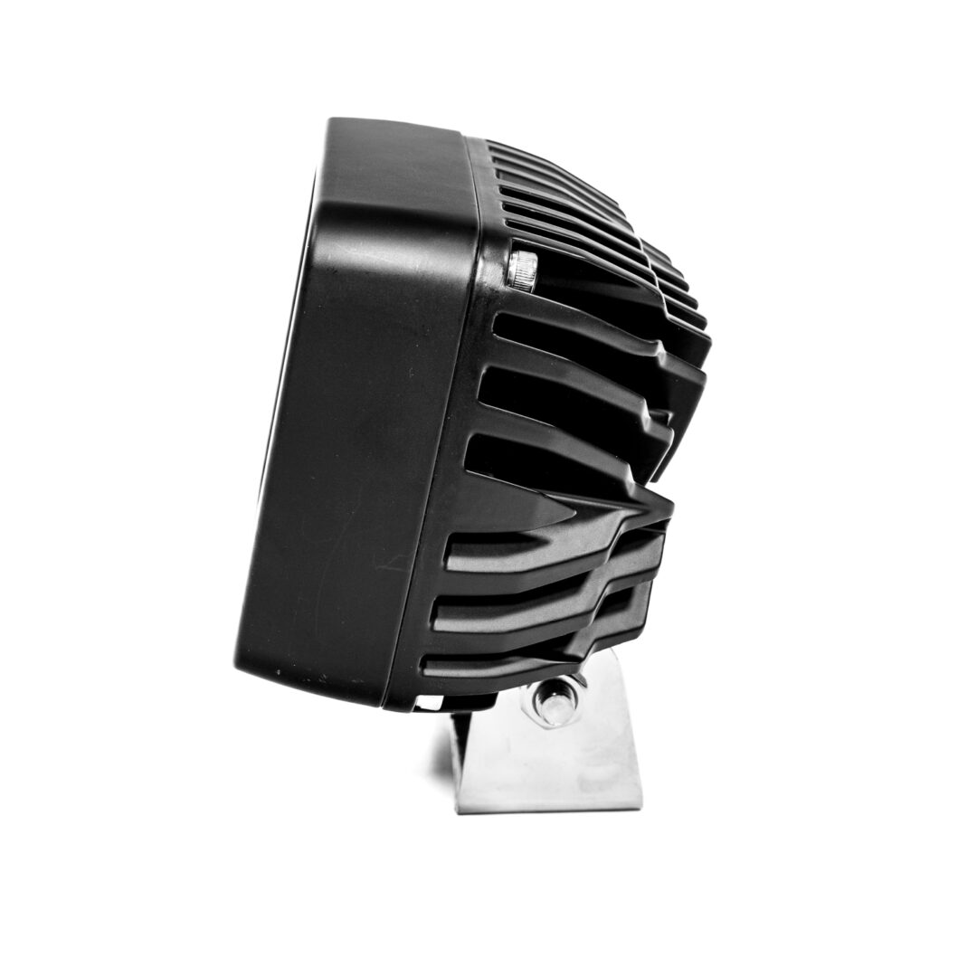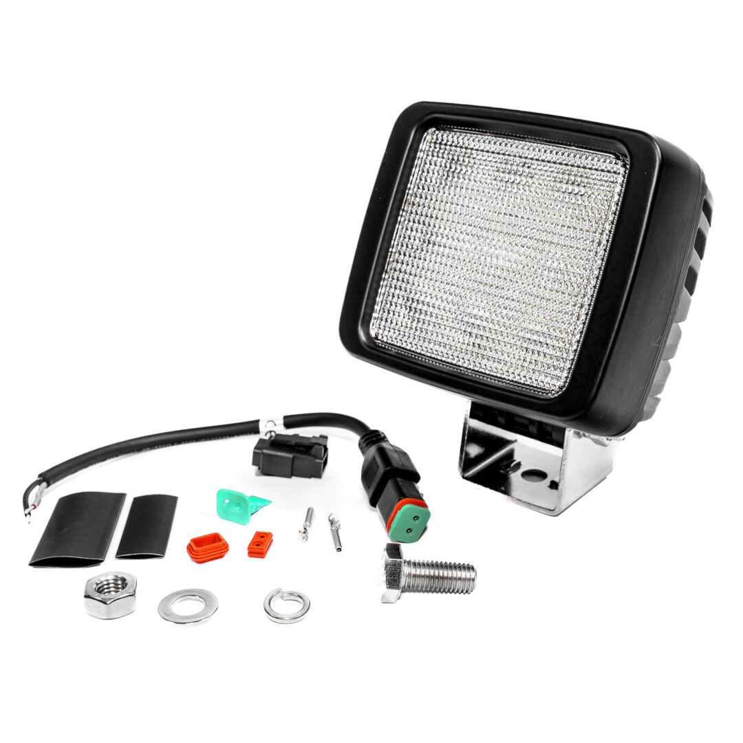 Obudowa wykonana z lakierowanego proszkowo aluminium i soczewka z poliwęglanu (PC) zapewniają trwałość i odporność na warunki atmosferyczne. Stopień ochrony IP67 chroni lampę przed wodą i pyłem, a zgodność z klasą CISPR 4 gwarantuje brak zakłóceń radiowych. Montaż jest szybki i bezproblemowy – lampa wyposażona jest w standardowe środkowe mocowanie oraz złącze Deutsch 2-pin.