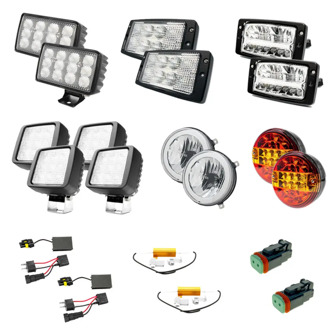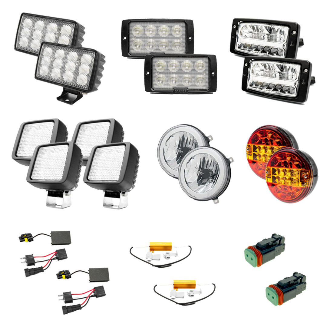 Pakiet zawiera: lampy przednie, lampy robocze, lampy tylne, złącza oraz rezystory