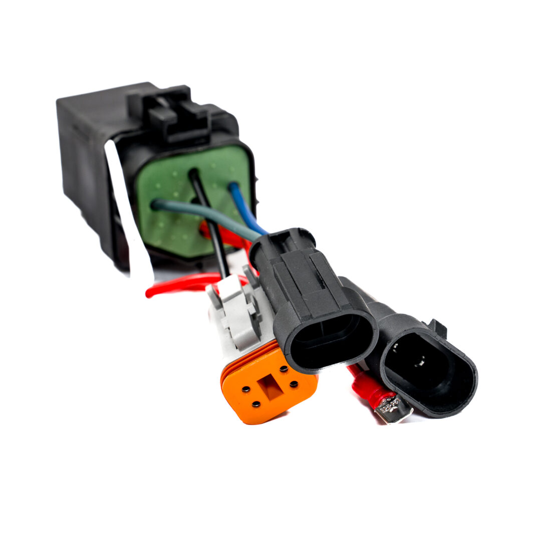 Kabel adaptera umożliwia podłączenie przekaźnika pomiędzy oświetleniem a oryginalną wiązką elektryczną ciągnika. Montaż odbywa się metodą plug & play — bez cięcia przewodów i bez ryzyka uszkodzenia instalacji.