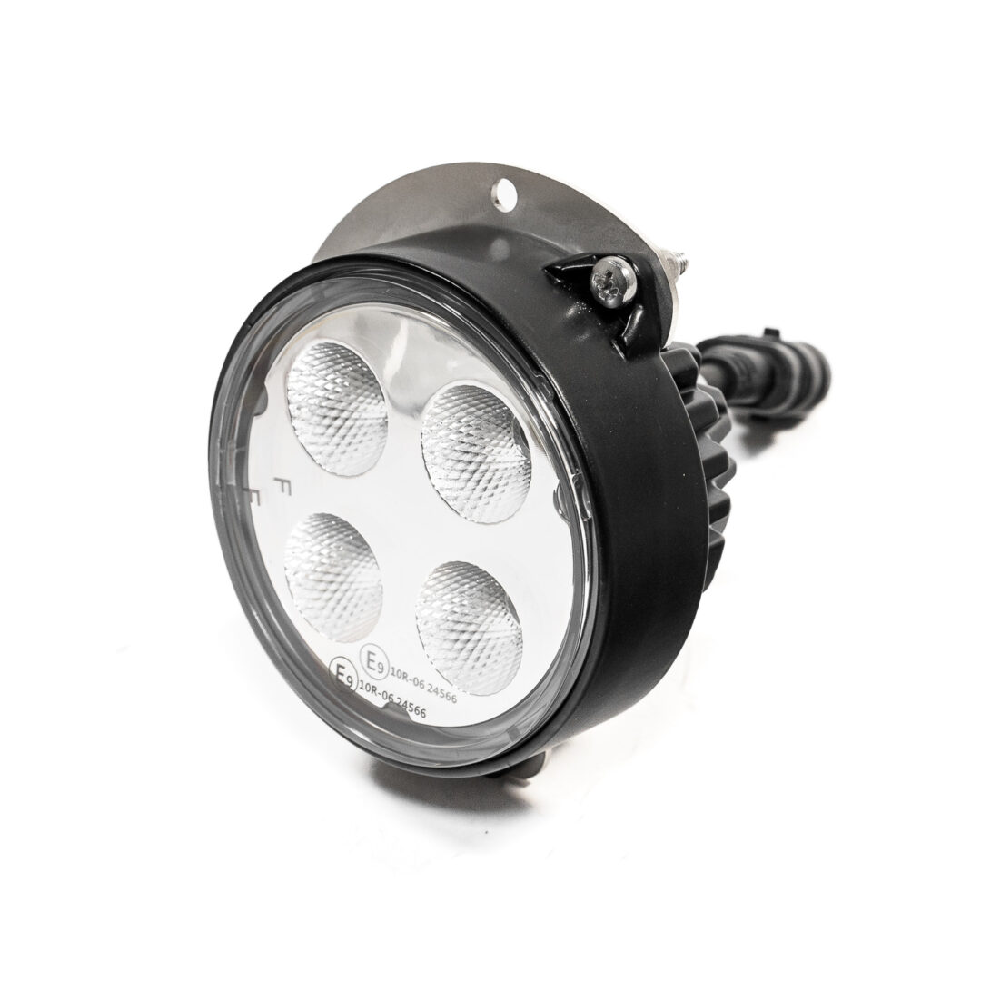 Dzięki rozproszonej wiązce światła o kącie 60 stopni, lampy CRAWER zapewniają szerokie i równomierne oświetlenie terenu wokół maszyny – idealne przy pracy w polu, na gospodarstwie lub podczas załadunku w nocy. Zastosowany układ EMC klasy CISPR 4 skutecznie eliminuje zakłócenia radiowe, gwarantując niezakłócone działanie radia, CB oraz innych urządzeń elektronicznych w kabinie ciągnika.
