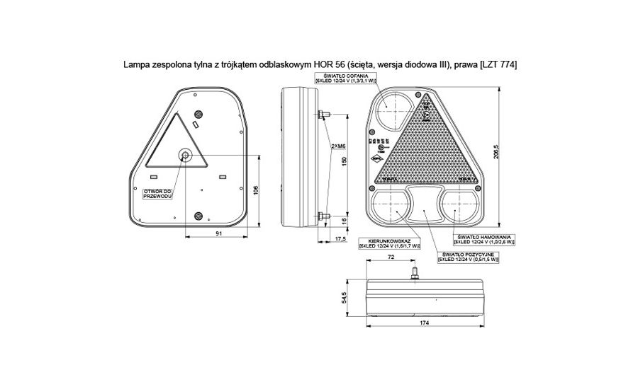 Lampa tylna LED prawa z trójkątem 10-30V Homologacja - LZD780