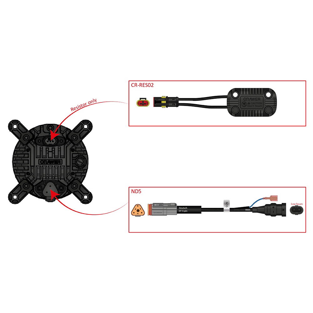 Lampy zostały wyposażone w złącze Deutsch 3 pin, które gwarantuje szybkie, szczelne i niezawodne podłączenie bez potrzeby przeróbek instalacji. Źródło światła emituje zimną biel o temperaturze 5500K, co zapewnia idealne odwzorowanie otoczenia i bardzo dobre doświetlenie terenu przed pojazdem. Symetryczna kompozycja światła pozwala uzyskać równomierny rozkład wiązki, bez prześwietleń i cieni.